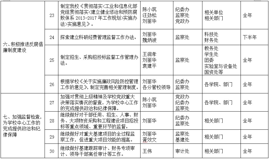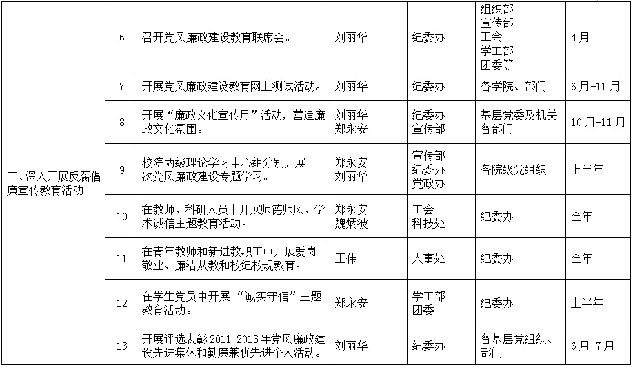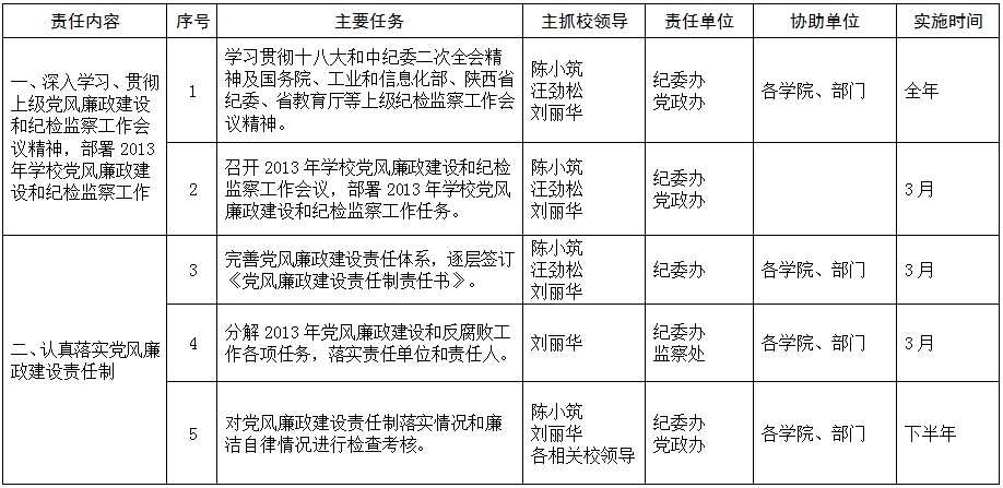 校党廉字[2013]12号-西北工业大学2013年党风廉政建设和反腐败工作任务责任分解表