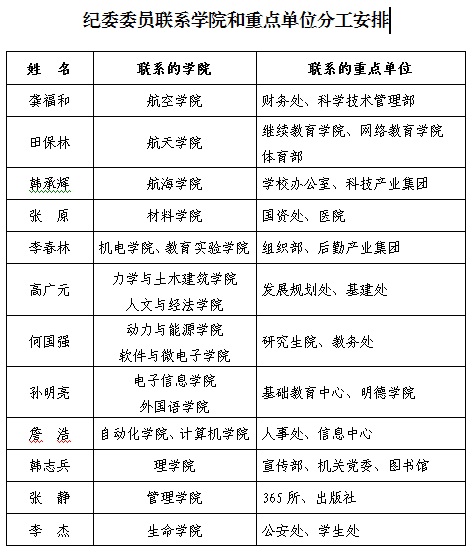 我校第十二次党代会选举产生了新一届纪委会和纪委委员,现将新一届纪委委员联系学院和重点单位分工安排予以印发,请各单位遵照执行。